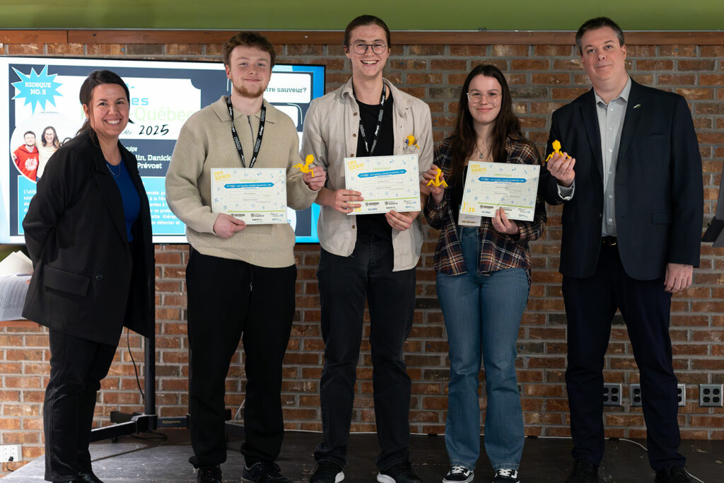 Plusieurs équipes gagnantes auront l’occasion de présenter leur projet lors de la finale régionale qui se tiendra les 14, 15 et 16 mars au Cégep Limoilou. Nos représentantes et représentants porteront fièrement les couleurs du Cégep et nous leur souhaitons tout le succès possible dans cette prochaine étape de la compétition scientifique !